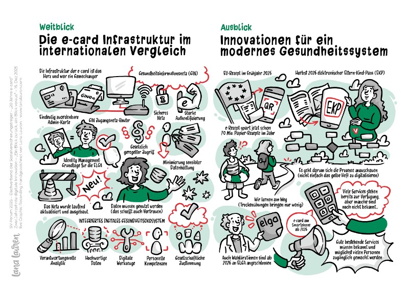 Am 16.12.2025 hat der Dachverband Sozialversicherungsträger im Rahmen des SV‑Forums ein rundes Jubiläum gefeiert. Unter dem Titel „20 Jahre e‑card – Zwei Jahrzehnte digitale Innovation“ haben hochkarätige Speaker aus Politik, Sozialversicherung, Ärzte- und Apothekerkammer sowie der OEDC in spannenden Vorträgen und Diskussionen die Bedeutung des e‑card Systems für das Gesundheitswesen aus verschiedenen Blickwickeln beleuchtet.